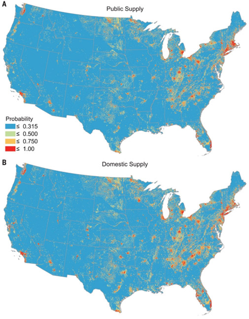 The USGC used a massive amount of research combined with well test performed in UCMR5 to create a map of the areas of various aquifer areas within the United States which could be presumed to have high levels of contmation. The map indicated the confidence level of the conclusions from these studies, with the red areas having a near 100% confidence level.